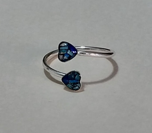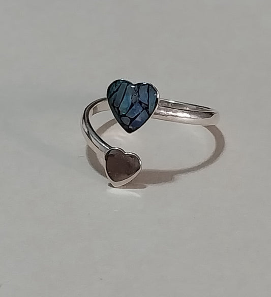 Anel Ajustável Prata dois Corações com Pedra Opala Piauí